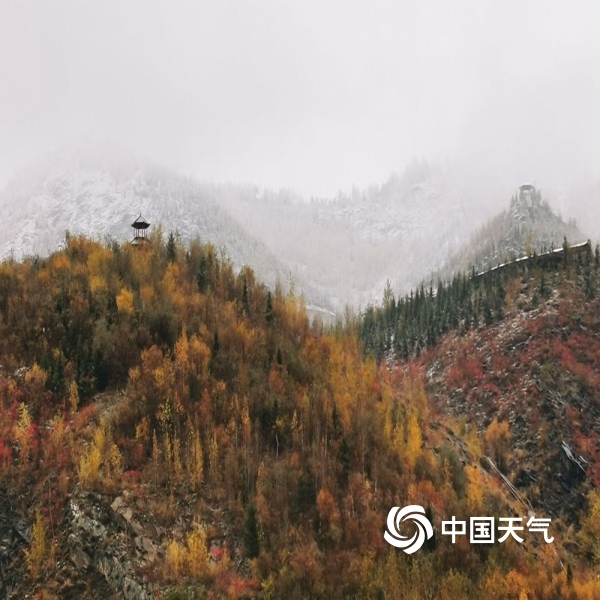 中国天气网讯:2019年10月24日在新疆阿勒泰地区拉斯特乡雪过天晴,蓝天丽日,远处的雪山映衬着或红或黄的树叶美不胜收!预计未来几天该地区天气晴好利于人们户外旅游拍摄(吴小明)