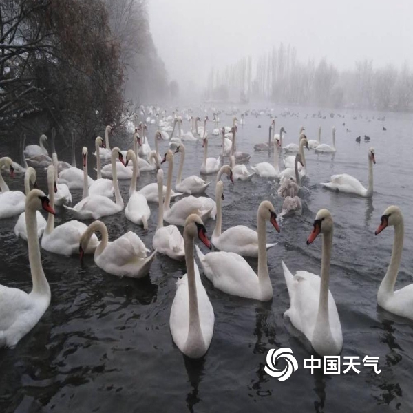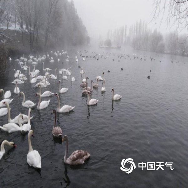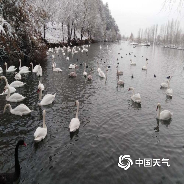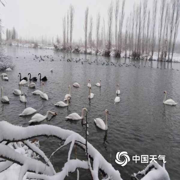 2019年11月24日 17:17中国天气网讯:截止2019年11月24日,天鹅泉湿地公园保护区共有160只白天鹅栖息,相较于往年,天鹅数量一天比一天增加,每年12月底数量增加到350只左右,在伊宁县首次强降雪的洗礼下,披上了蓬松柔软的银装。放眼望去,枝头的“繁花”和湖面的天鹅,仿佛是仙境美不胜收。(文/李晓梅、吴一虹 /李晓梅)