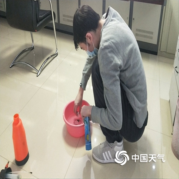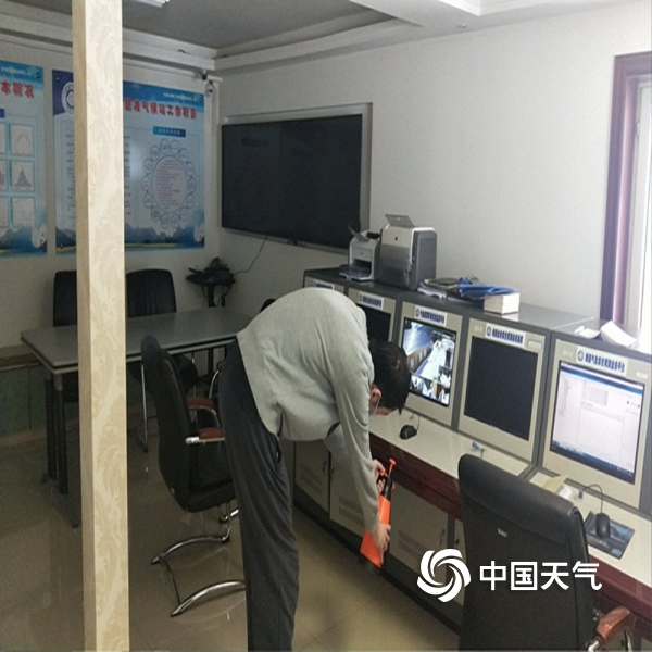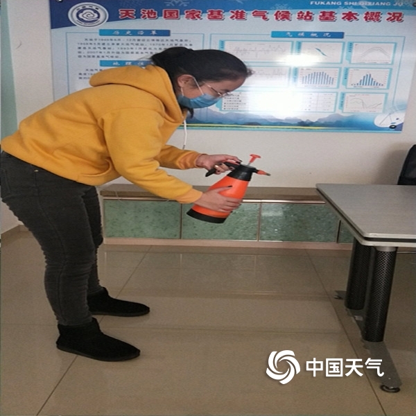 2020年02月14日 16:19气象局工作人员在进行日常消毒工作