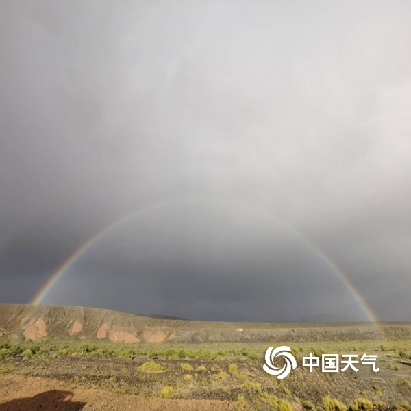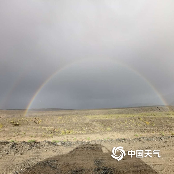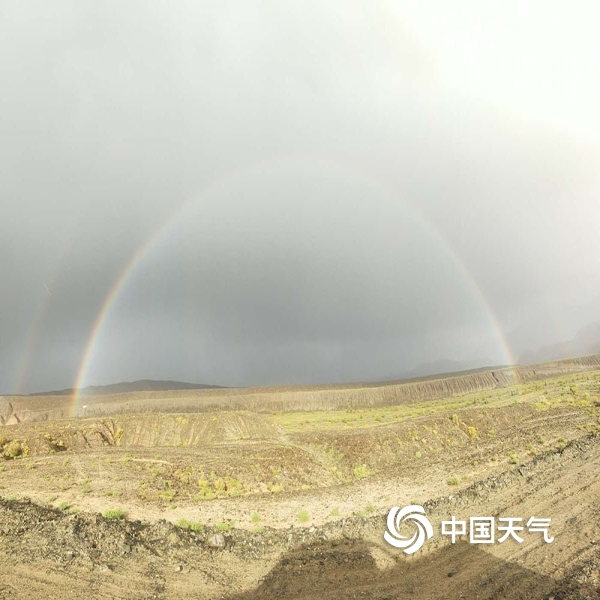 新疆阿图什市戈壁滩阵雨过后显彩虹美景(1/3)