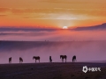 2020年10月10日早晨,晴间多云,气温-8℃~5℃。昭苏县湿地公园炊烟袅袅,晨曦初照,而山像含羞的少女,若隐若现。牛羊也不甘寂寞,跟着歌唱,天边的牧场美轮美奂。金灿灿的朝晖,渐渐染红了东方的天际,霞光绚烂,朝阳映照漫天云彩,昭苏的大草原被灿烂的云霞染成一片绯红,构成一幅绝美画卷,让人惊艳。(文/孙栋栋;图/陈荣江、王媛)