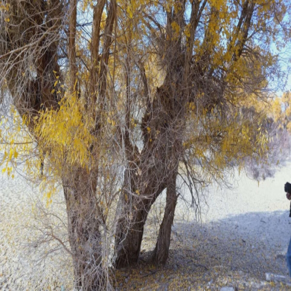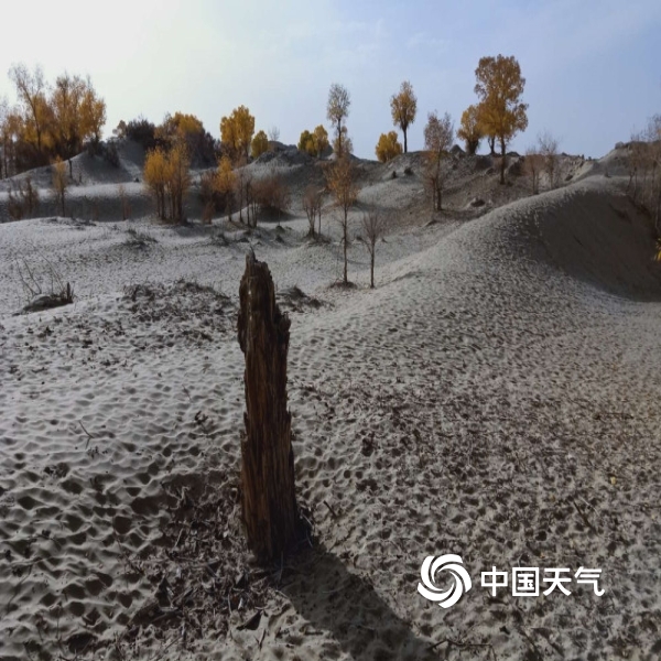 策勒县深秋胡杨与沙丘成画 静谧而美好