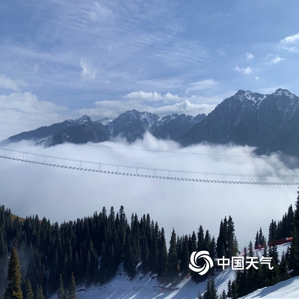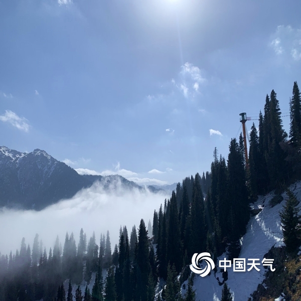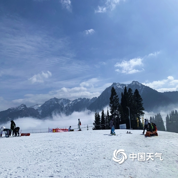 中国天气网讯 乌鲁木齐南山丝绸之路滑雪场雪景美如画,蓝天白云相互映衬,远处的山被雾气笼罩着,显得格外的壮丽。诸多滑雪爱好者集聚这里,感受和欣赏山舞银蛇。图为滑雪场美景