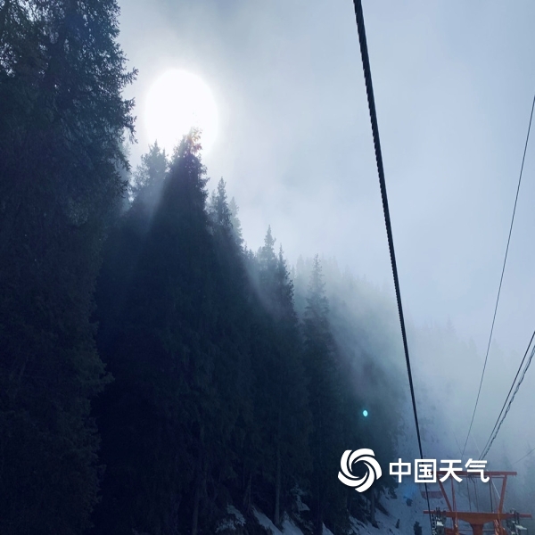 2021年02月25日 15:49图为坐缆车视角的山上美景,山峰被雾气笼罩着,宛如仙境