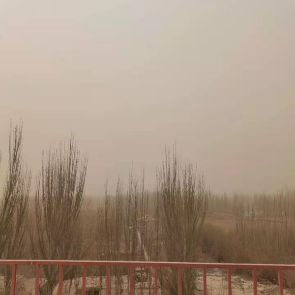 中国天气网讯 2021年3月15日起,受冷空气东灌影响新疆塔里木盆地出现强沙尘天气,多地进入“吃土”模式。图为3月15日巴州若羌沙尘天气。(图/肖莲媛)
