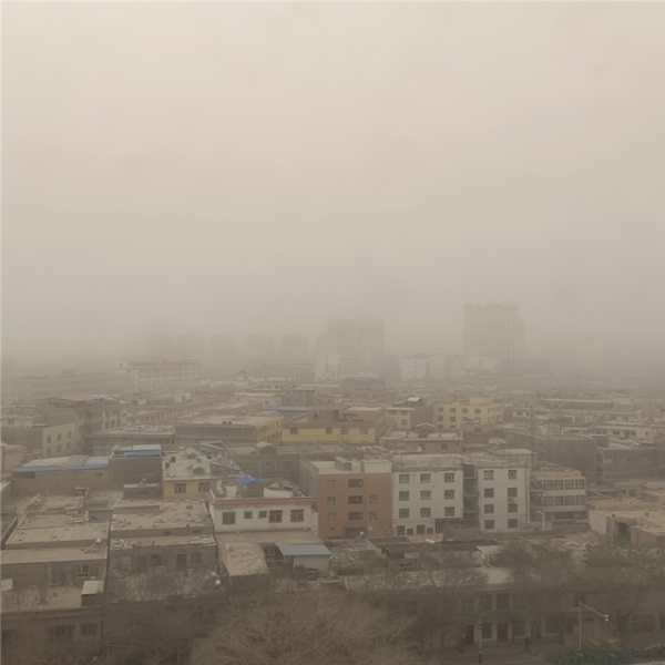 2021年03月17日 16:13中国天气网讯 2021年3月15日起,受冷空气东灌影响新疆塔里木盆地出现强沙尘天气,多地进入“吃土”模式。图为喀什3月17日沙尘天气。(图/王海英)