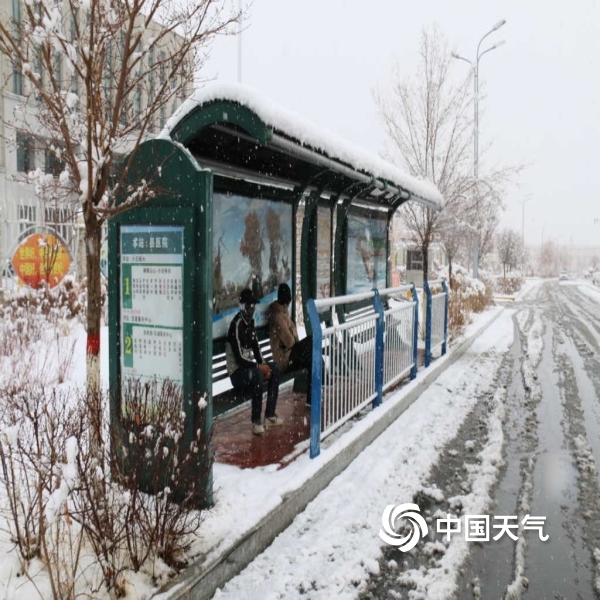 2021年04月06日 11:40图为:大雪中公交车站等车的行人