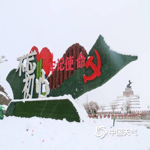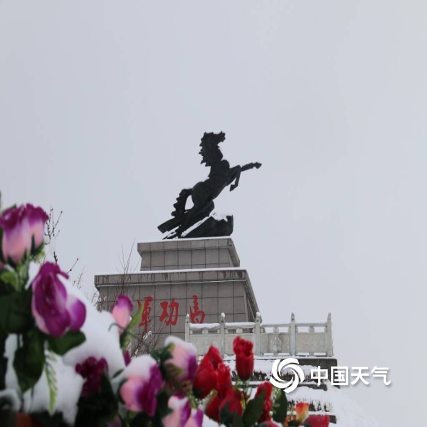 2021年04月06日 11:40图为:伊吾标志性建筑物军功马屹立在雪中