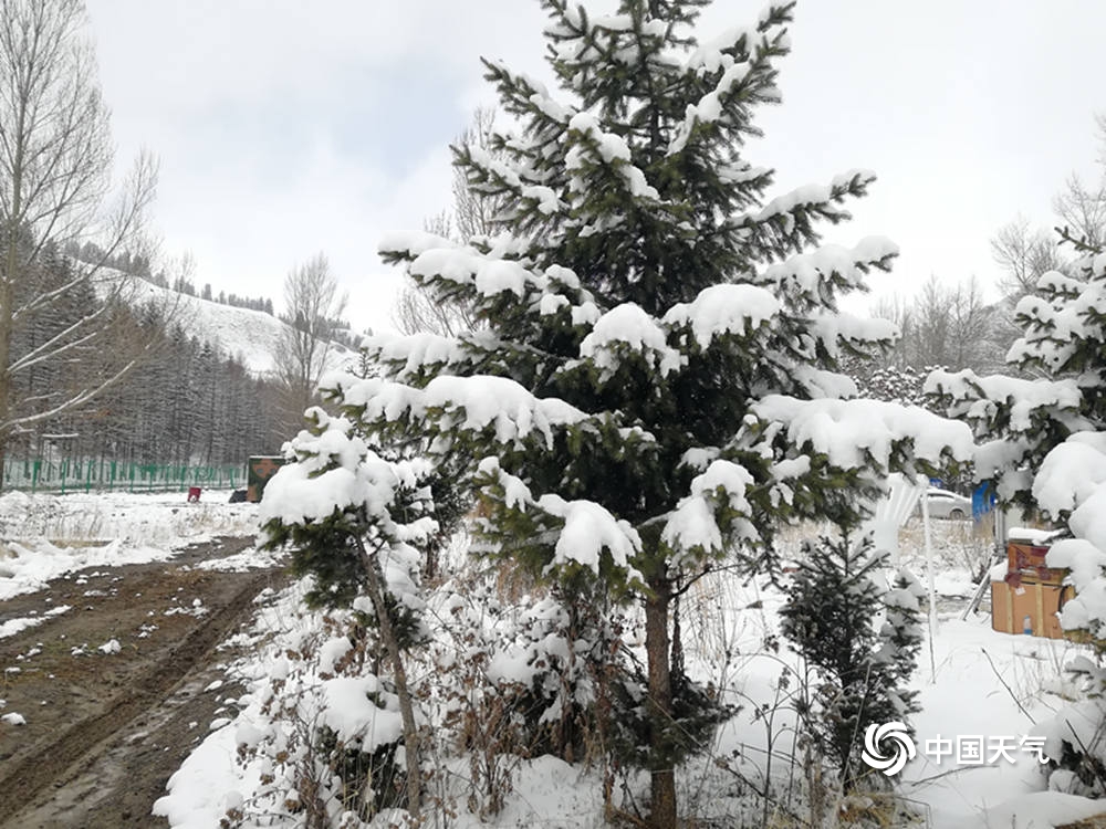 在进入到四月下旬后,天山北坡一线纷纷进入到繁花似锦的早春时节,各地花团锦簇。分外妖娆。可是,在此次冷空气的影响下,连续的降雪让天山山区切换到了雪国模式。纷纷扬扬的雪花把山区装扮得如同童话中的冰雪王国一样美丽。(谢小红)