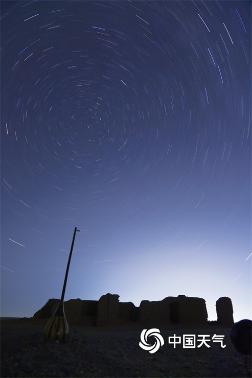 中国天气网讯 新疆哈密市距城区约80km处大南湖,由金色沙丘组成的南湖沙漠风光屹立于戈壁深处。傍晚时分可目睹夕阳染沙的缤纷。夜晚,浩瀚星空更是户外爱好者的必去之处,夜晚晴空万里,星空密布,怎能让人不心生向往。(文/王娟 图/穆吉布力·热合曼)