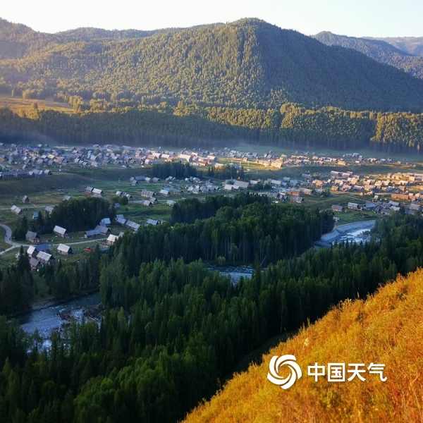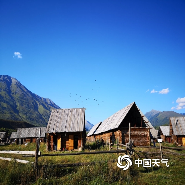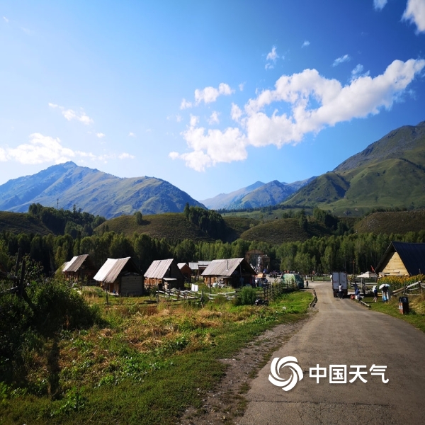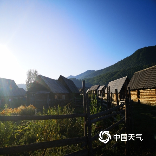 八月晴空下的禾木村