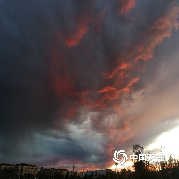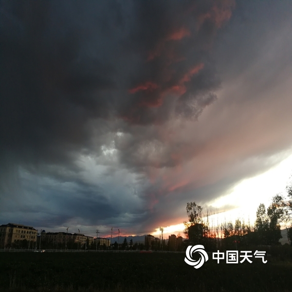 美美美!新疆昭苏县上空的晚霞和火烧云如此美丽,你看到了吗?