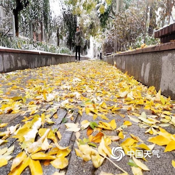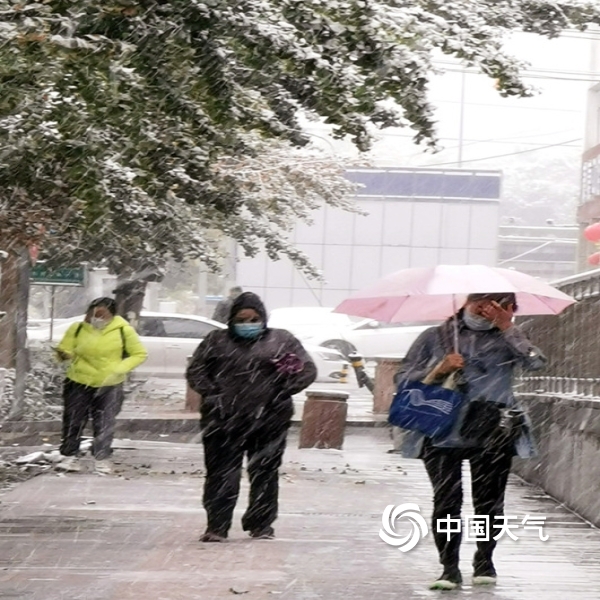 2021年10月08日 14:37图为行人走在秋季初雪中(图/李志宏)