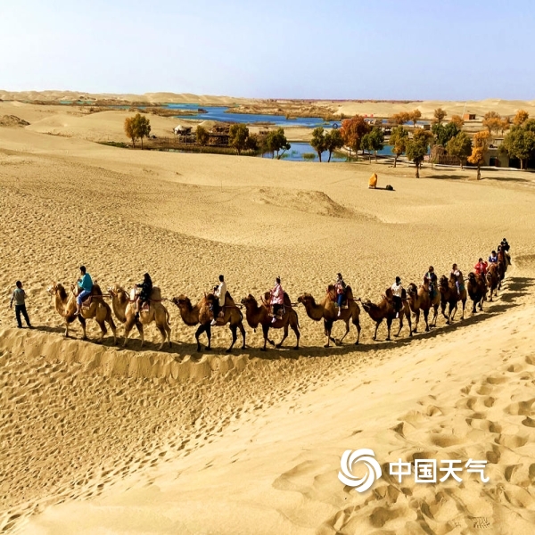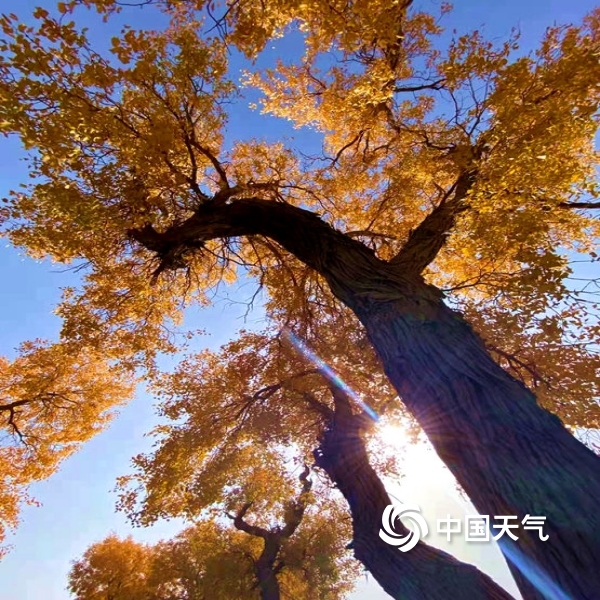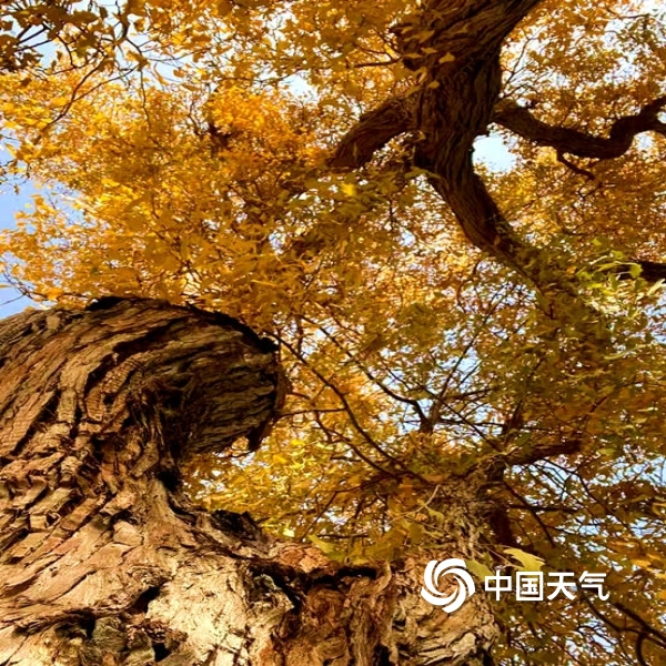 中国天气网讯 时下,新疆维吾尔自治区巴州气温适宜,胡杨进入了最佳观赏季,各地游客纷至沓来,感受戈壁秋色,欣赏大漠胡杨,各地气象部门及时发布胡杨金叶观赏预报服务和最佳观赏期和观赏地,促进旅游业发展。图为沧桑胡杨,虬枝盘旋