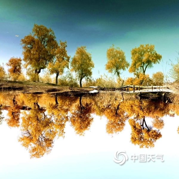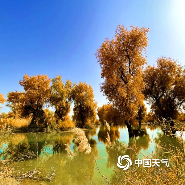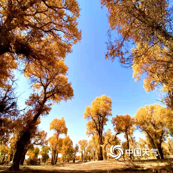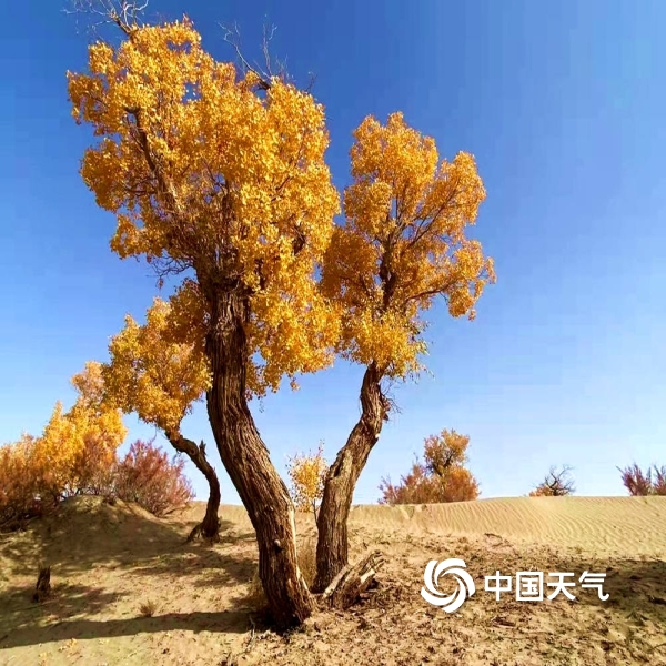 2021年10月28日 11:25图为天蓝胡杨黄,两色相映衬