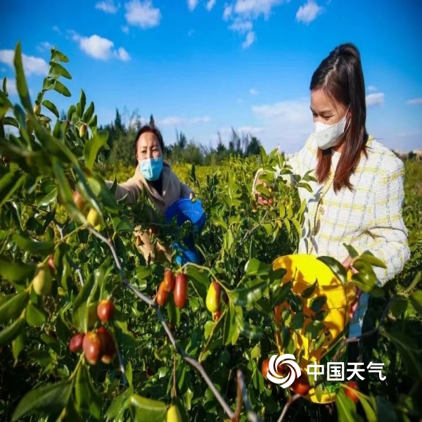 中国天气网讯 金秋十月,瓜果飘香,呼图壁的田间地头一派丰收的盛景。(拍摄:孙颜琪)