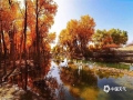 特别值得一提的是和田地区洛浦县杭桂乡的“湖杨林”,这里胡杨绕湖而生,每到金秋时节,就会形成独特的“湖杨林”景观,之所以是“湖杨”而不是胡杨,主要是这片胡杨林有一个清澈的湖泊,金秋时节,金黄色的胡杨怀抱着湖泊,而湖泊水面倒映着金黄色的胡杨,它们像一对常年厮守的恋人,这宁静而久远的厮守会让人不仅产生无限遐想而陶醉其中。(闫恒羽)
