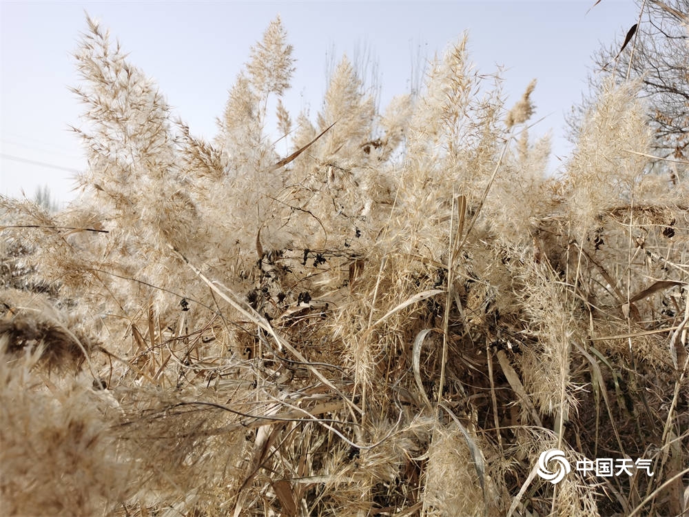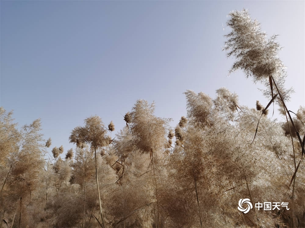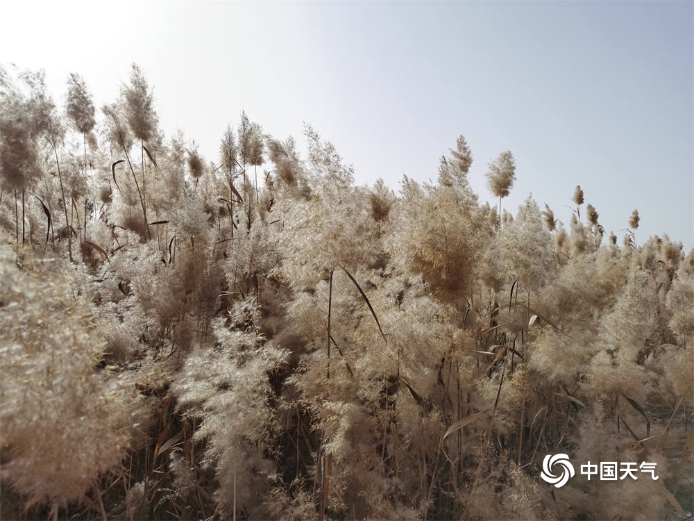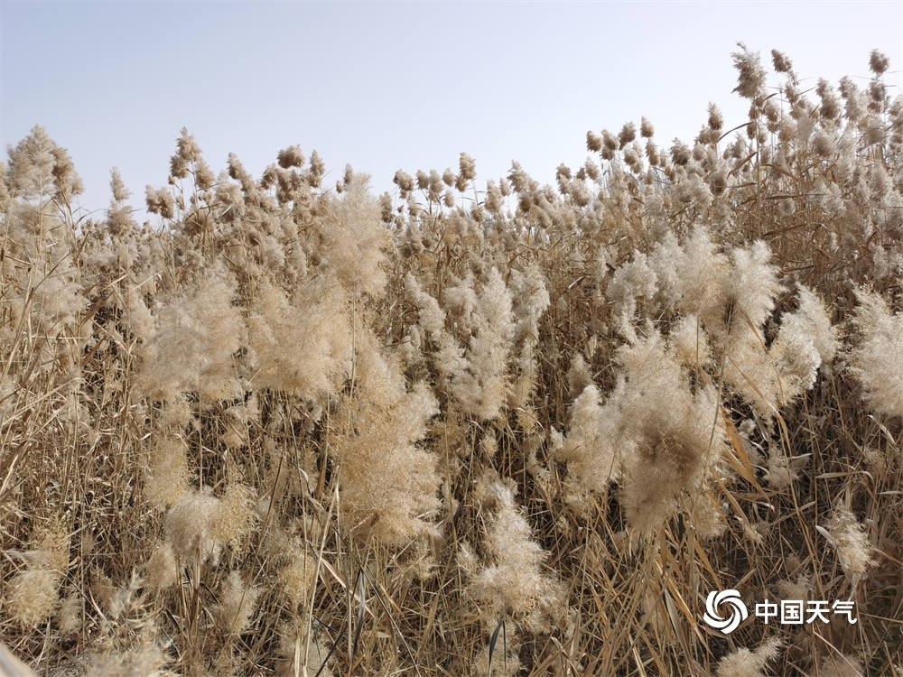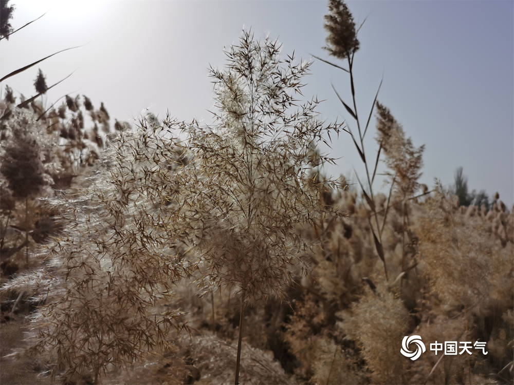 初冬季节,恰逢小雪,在大西北的盐碱地上,芦苇荡里的芦絮在阳光的照射下宛若雪花般晶莹剔透。拍摄于2021年11月22日去往维护区域站的路上。(图:李强)
