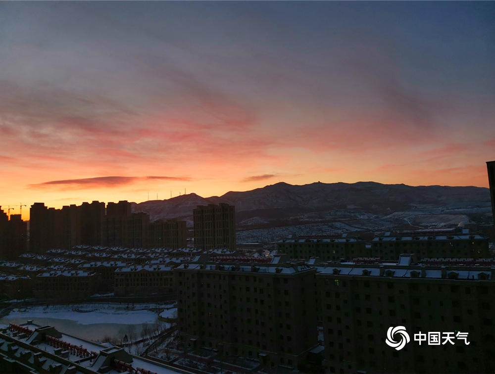中国天气网讯 2021年11月23日清晨8点半左右,新疆乌鲁木齐市朝霞映照在东方天空,绚丽多彩,仿佛一幅美丽的画卷。(图文/赵聪敏)