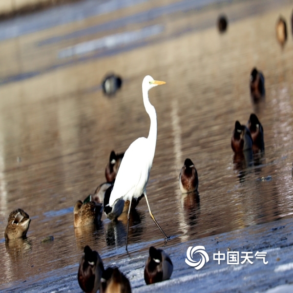 新疆塔城:11月气温略偏高 千余只野鸭进城越冬