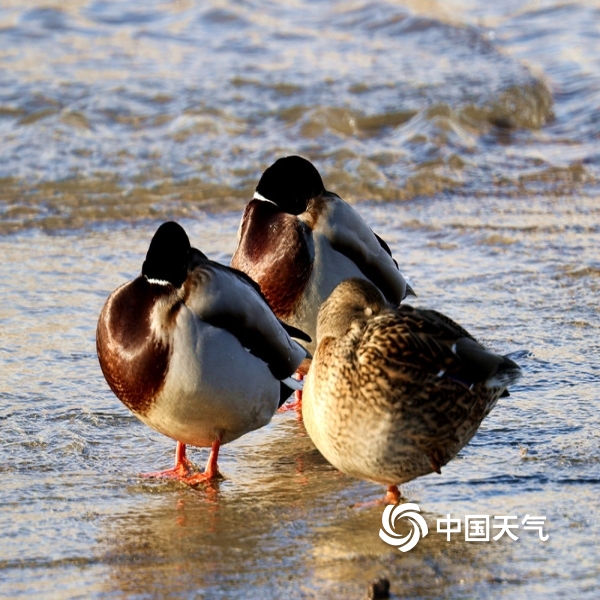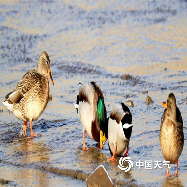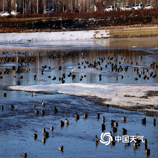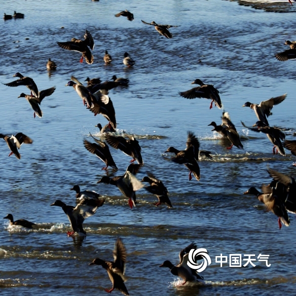 中国天气网讯 11月27日,上千只绿头野鸭新疆塔城市乌拉斯台河里过冬,野鸭们有的相互追逐,有的打着瞌睡,有的在河道里觅食,成为城市一道美丽的风景。图为野鸭在拉斯台河里过冬。(图/李志宏 黄新琳)