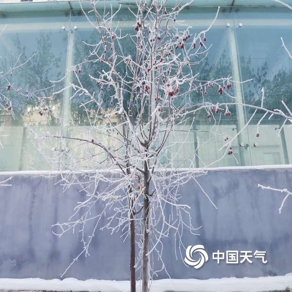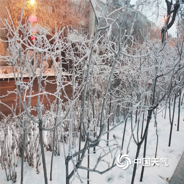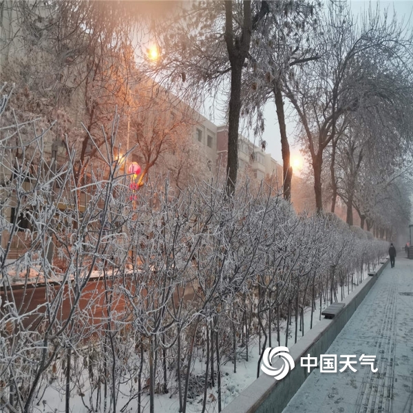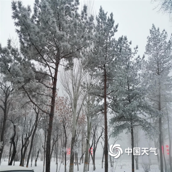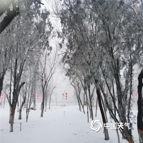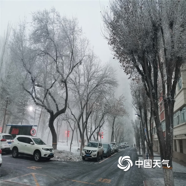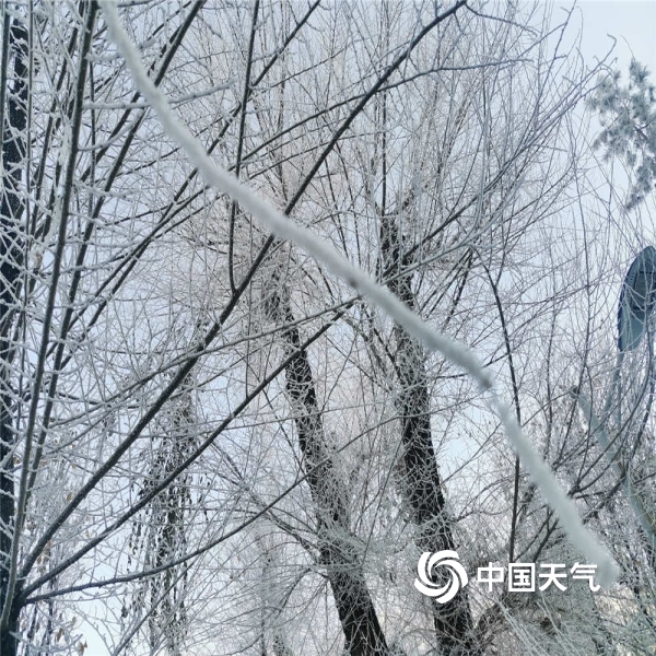 中国天气网讯 2021年12月25日,乌鲁木齐由于大雾的出现,枝头挂满雾凇,宛如琼树银花。(图文/赵聪敏)