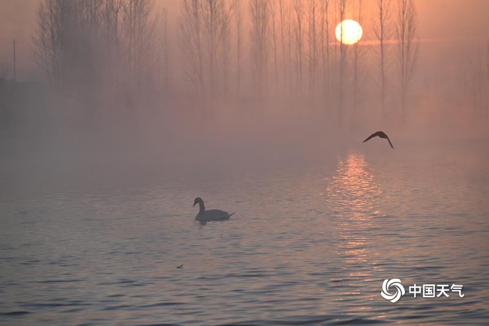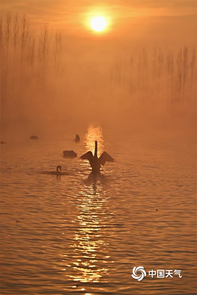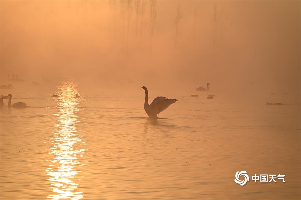 傍晚在落日的余晖下伊宁县英塔木镇天鹅泉湿地公园的天鹅湖宛如仙境,天鹅们沐浴在晚霞里落日余晖共映成为一幅赏心悦目的画卷。(李晓梅)