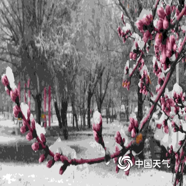 2022年03月23日 12:572022年3月23日,新疆伊犁哈萨克自治州伊宁市,天空飘起了雪,雪花落在山桃树的枝头,待放的粉红花骨朵被映衬的格外美丽。