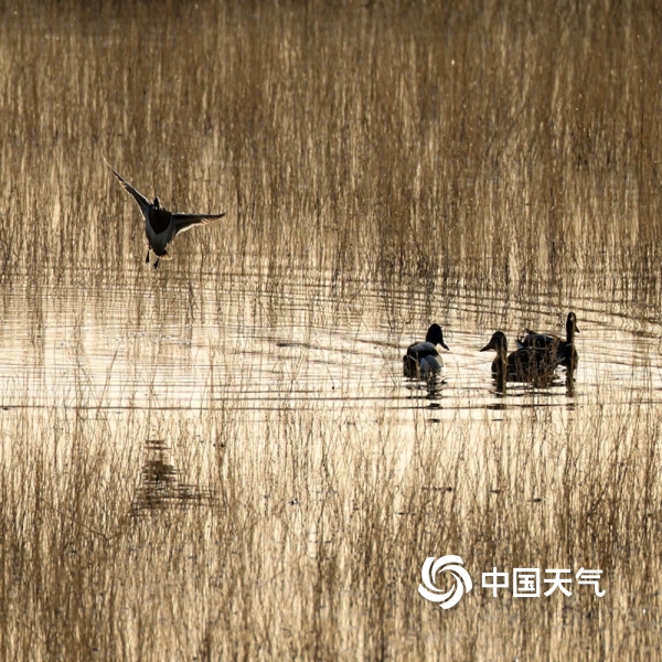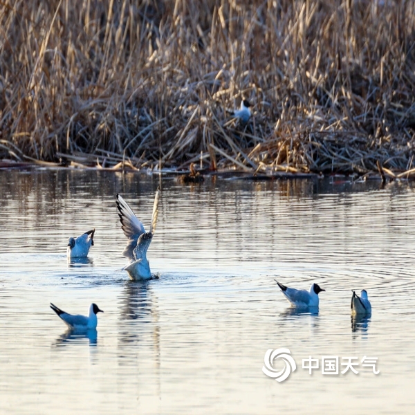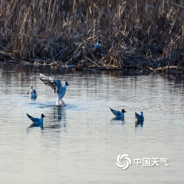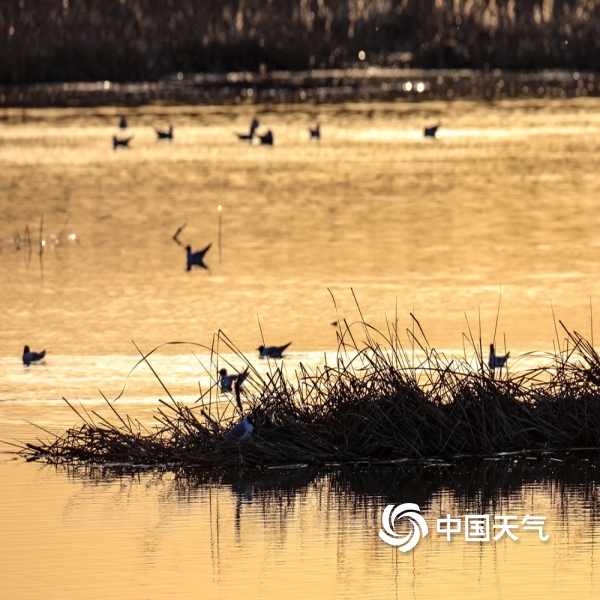4月1日,新疆昌吉回族自治州呼图壁县五工台镇百泉湖,水波澹澹群鸟共鸣