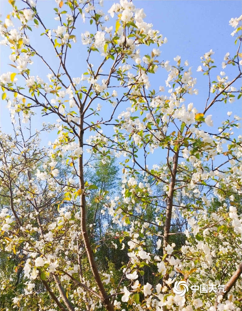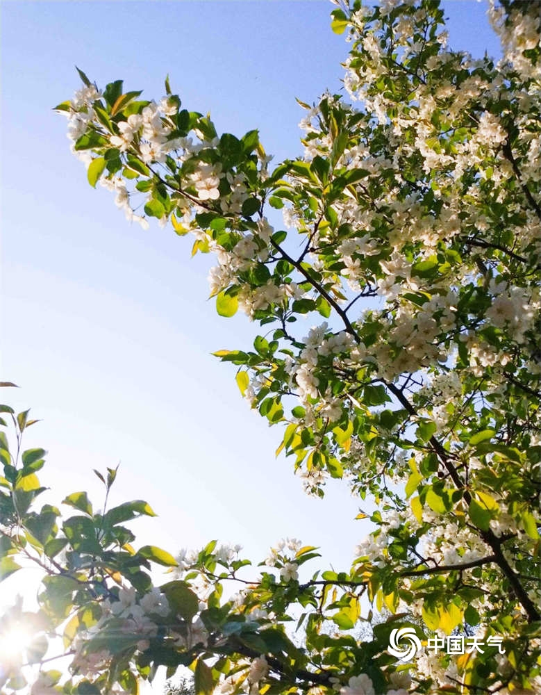 中国天气网讯 人间芳菲四月天,新和县处处繁花似锦。一树树梨花竞相开放,洁白的花儿傲立枝头,在明媚的春色中显得清丽动人。满树洁白如银似雪的花朵,微风拂过,缕缕清香扑面而来,幽深的梨花芳香,新鲜的泥土气息,沁人心脾,使人如痴如醉。(杨占瑾)