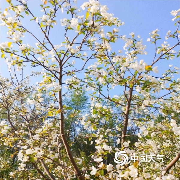 中国天气网讯 人间芳菲四月天,新和县处处繁花似锦。一树树梨花竞相开放,洁白的花儿傲立枝头,在明媚的春色中显得清丽动人。满树洁白如银似雪的花朵,微风拂过,缕缕清香扑面而来,幽深的梨花芳香,新鲜的泥土气息,沁人心脾,使人如痴如醉。(杨占瑾)