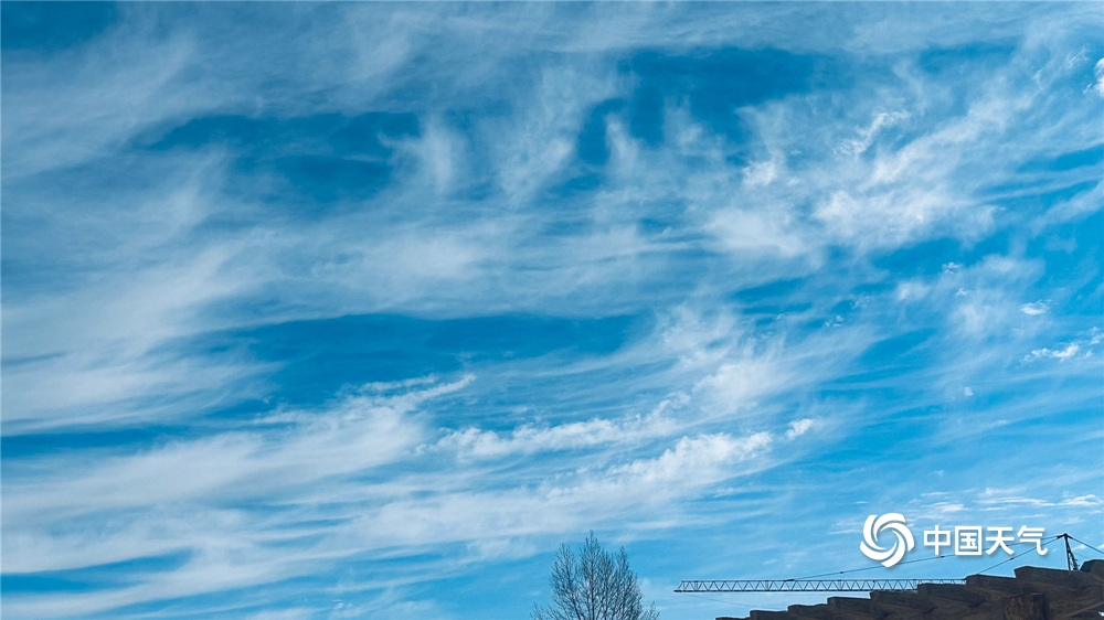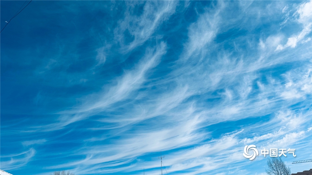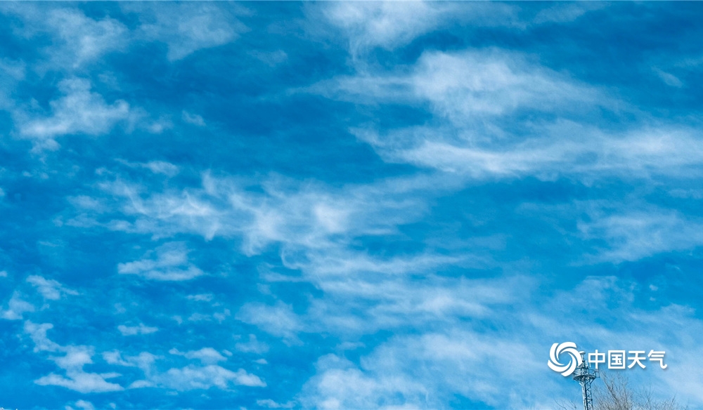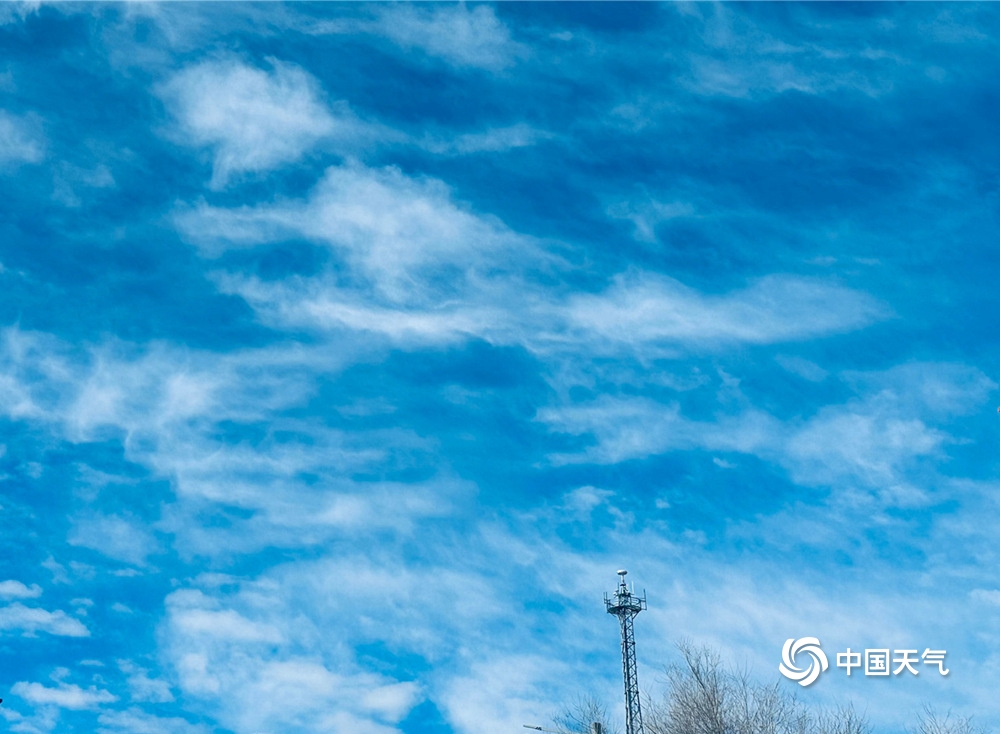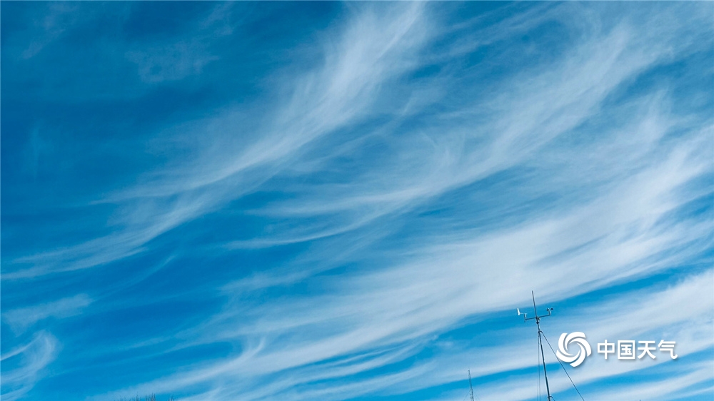 中国天气网讯 2023年2月22日,新疆和布克赛尔县万里晴空下,是以毛卷云为主的云天,云层轻盈飘逸,如同微风拂过的海面,泛起朵朵浪花。(图/文 王海燕)