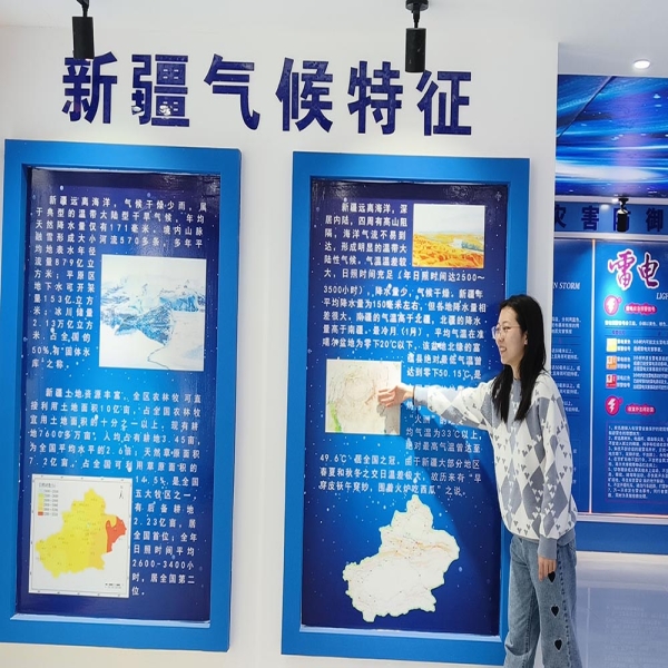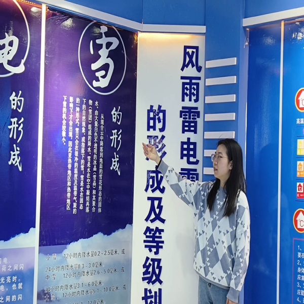 2023年3月7日,炮台气象站工作人员吕美云正在为“323气象科普基地”宣传讲解排练。(图/文:吕美云 吴思怡)