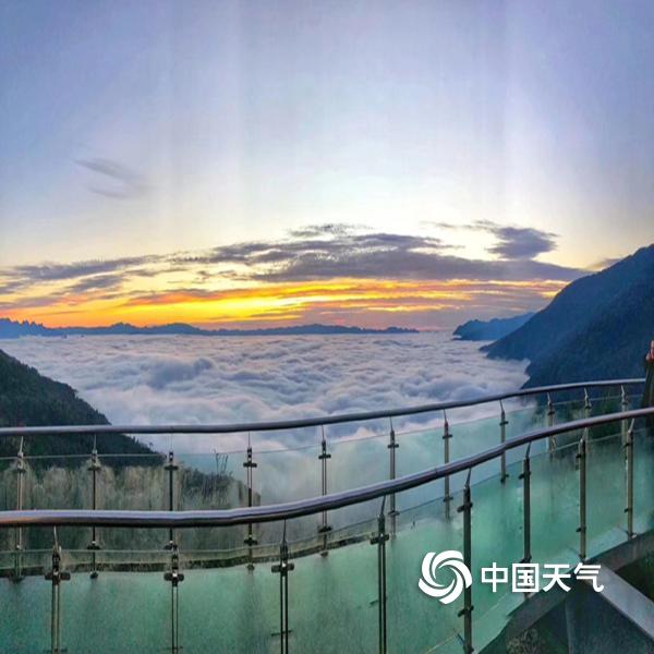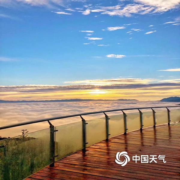 2019年01月05日 11:54屏边大围山位于云南红河州,清晨站在一览众山的玻璃栈道上俯视云层,映入眼帘的是在朝阳映射下漫无边际的彩云犹如翻滚奔腾的海浪。大围山四周连绵不断的群山、森林都仿佛成为玲珑点缀,山与云海前呼后应,相得益彰。文/周春美 摄/窦悦宁