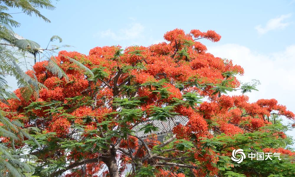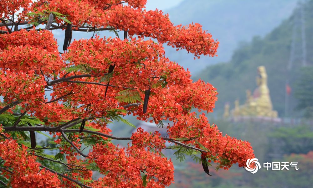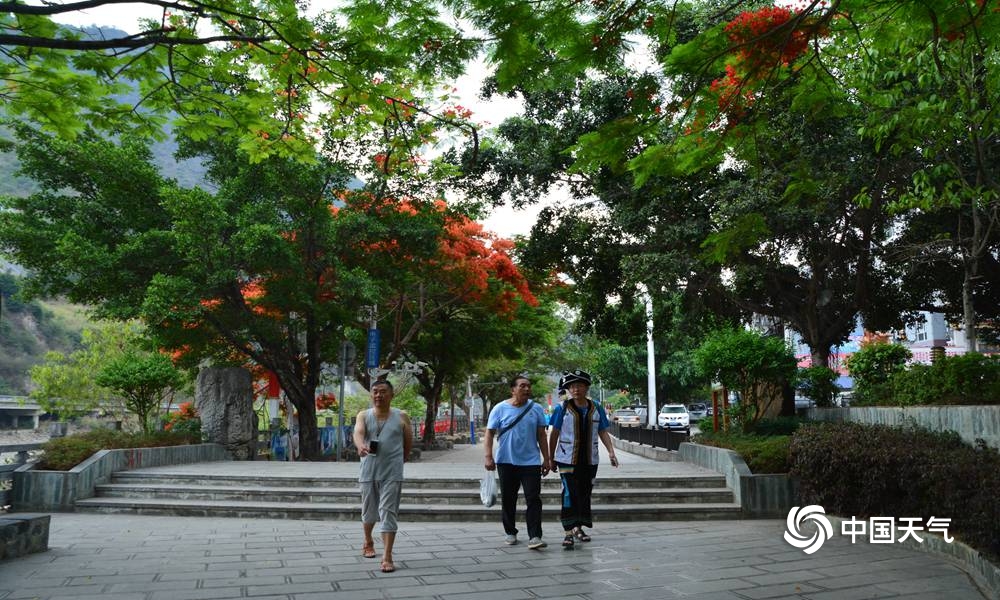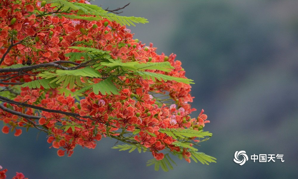 凤凰木,取名于“叶如飞凰之羽,花若丹凤之冠”。每年夏季盛开,每朵凤凰花像一团火焰,一树凤凰花像熊熊燃烧的火把,怒江两岸生态走廊盛开的凤凰花,灿烂夺目,鲜艳的风景线给城市注入勃勃生机。(文/李兰梅)