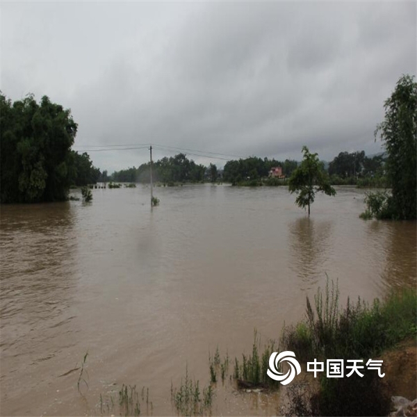 中国天气网讯 25日,盈江县多个乡镇降下暴雨、大暴雨天气。强降雨导致盈江县多地内涝,河流发生洪涝灾害。图为盈江县平原镇盏达河发生洪涝灾害。(图/储平 文/宋云涛)