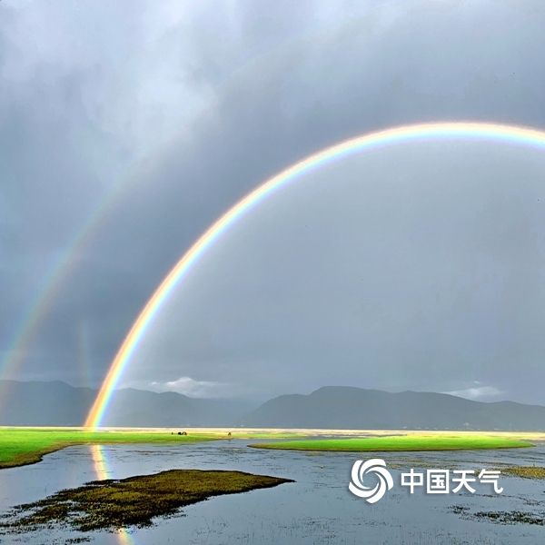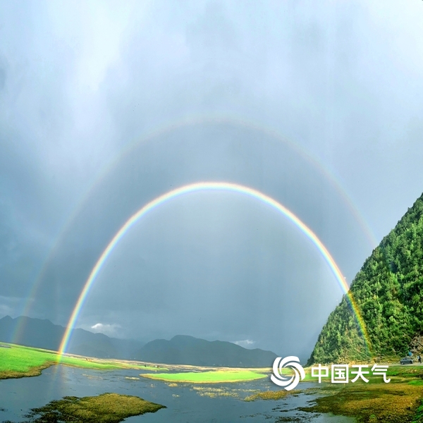 2019年07月03日 15:06中国天气网讯 7月2日傍晚,香格里拉纳帕海上空出现精彩的“双彩虹”现象,伴着淅沥沥的小雨,景色动人,引起过往游客驻足观看。图为稍纵即逝的双彩虹。摄/李安琪 文/孙娅蕾