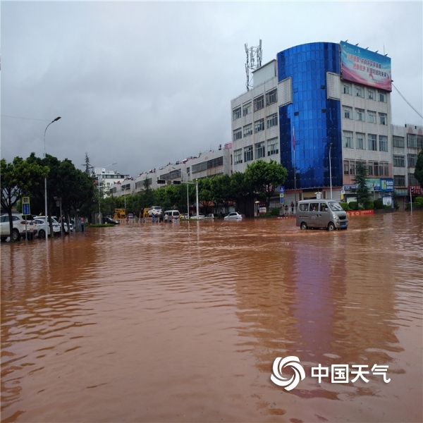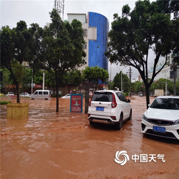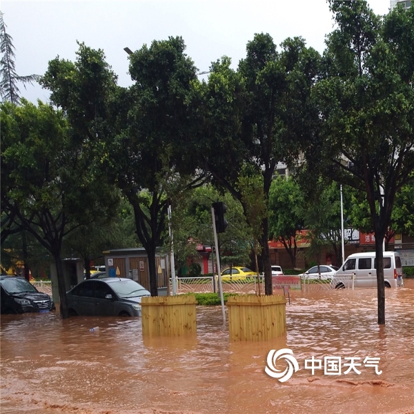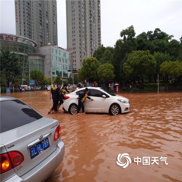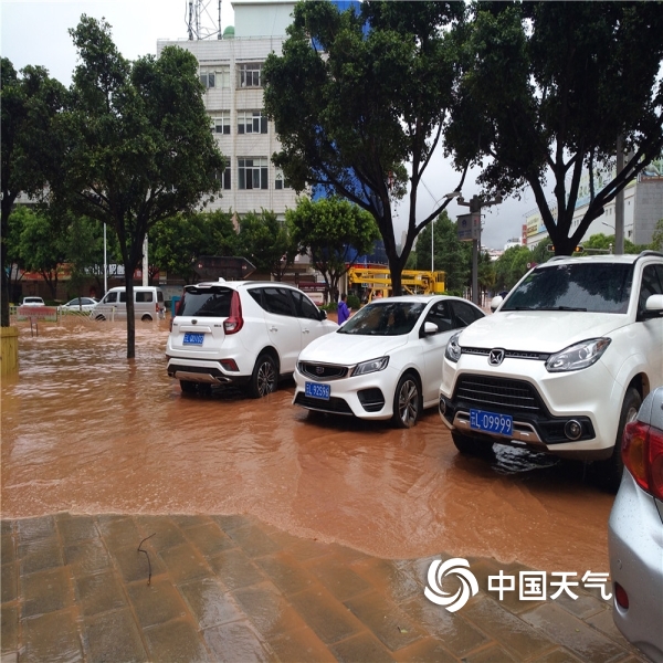 中国天气网讯 今天凌晨5点,云南大理市突降暴雨,并伴有较强雷电活动。强降雨主要集中在6-7时,最大小时雨强达29.1毫米(福文社区)。强降雨导致大理市部分路段积水严重。图为车辆已泡在水中。(文/高月忠 图/李庆红)