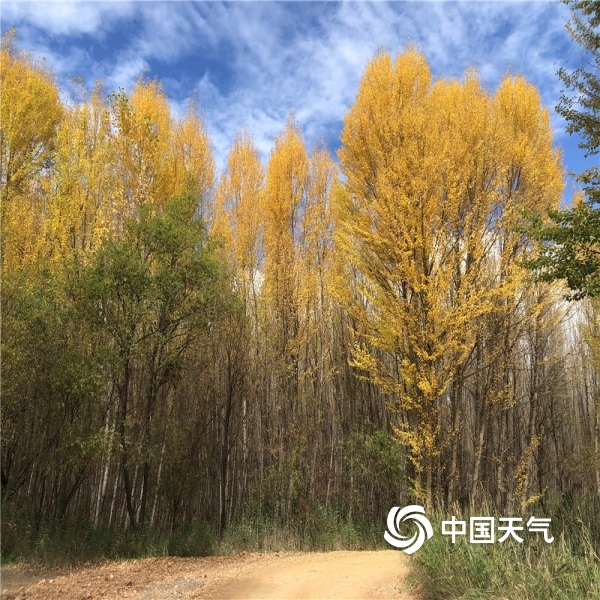 中国天气网讯 十月的大理剑川剑湖湿地,一棵棵挺拔的树披上了金黄的树叶,微风吹拂,如同金色的海洋泛起了波澜,在澄澈高远的蓝天白云下唱起了一首动人的歌,带来了来自秋日的问候。(图/杨坤琳 文/杨坤琳)