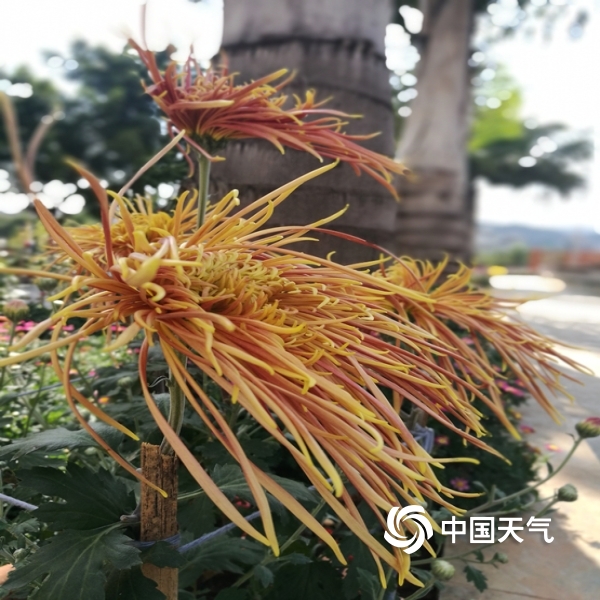 中国天气网云南站讯 十月的云南楚雄,秋风已经带来了寒意,但是楚雄师范学院 菊花却恣意迎寒绽放着,它们有的花瓣微卷,有的洒脱非凡,为秋天增添一幅幅绚丽多彩图画。(文/张静 图/邓玉萍)
