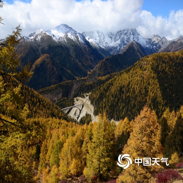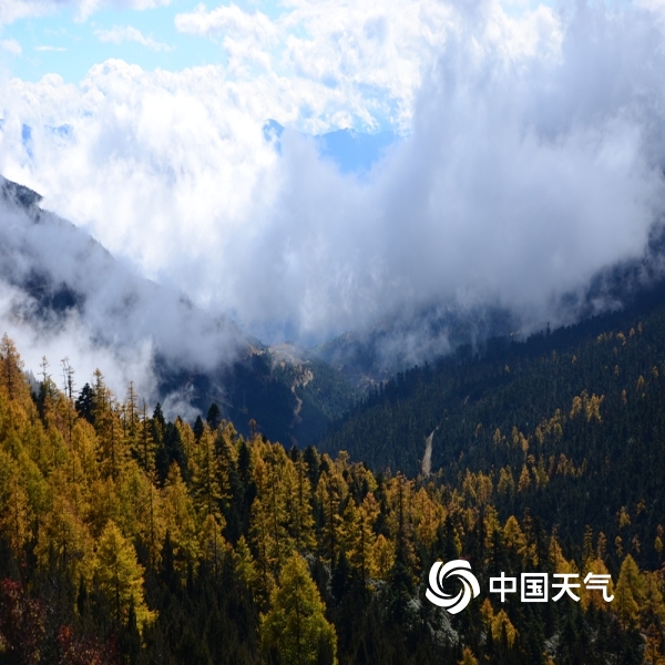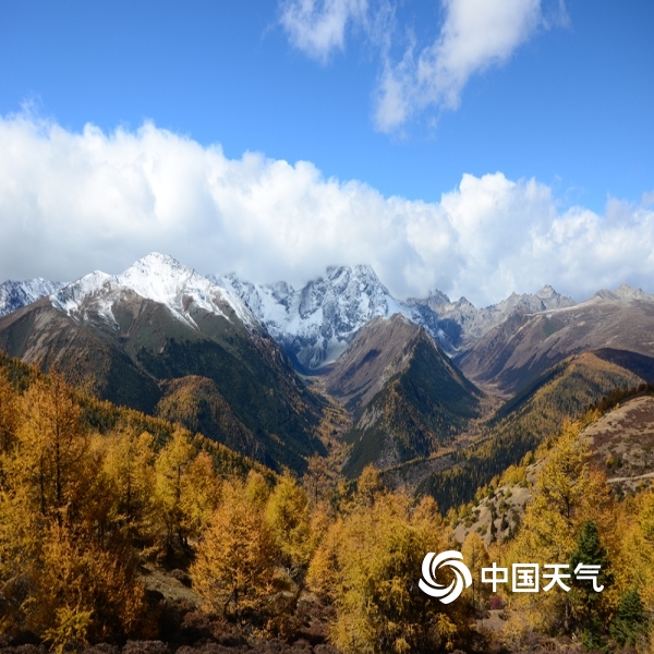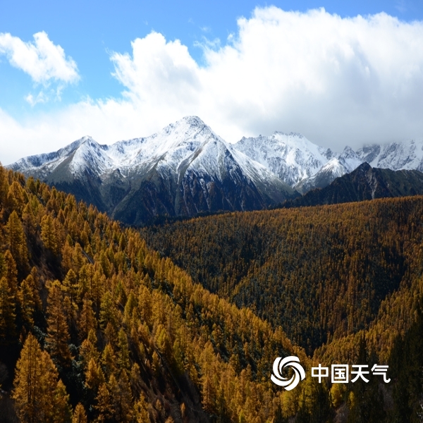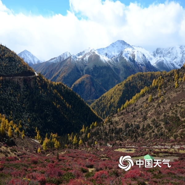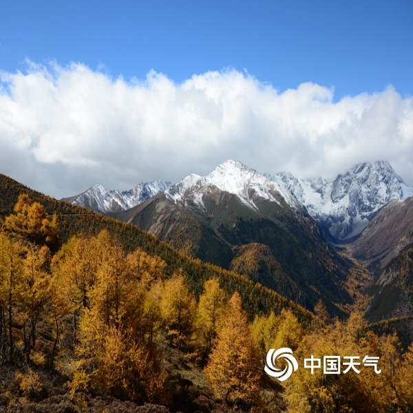 中国天气网讯 白马雪山位于云南省德钦县境内,金秋十月是白马雪山秋意正浓的时候,黄金遍野,层林尽染,如火如霞的秋叶,像雪山的灵魂尽情地展现万千姿态,被誉为中国最美秋景的世外桃源。(图/文 李安琪 )