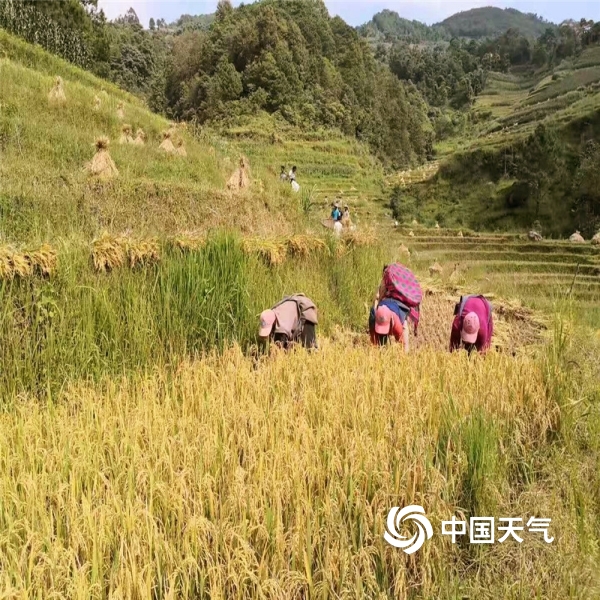 中国天气网讯 云南省澜沧拉祜族自治县冬无严寒,夏无酷暑,属南亚热带山地季风气候。29日,澜沧拉祜族自治县南岭乡麻栗村秋高气爽,迎来大丰收。田间地头,稻穗累累,农民们干劲十足,处处洋溢着丰收的喜悦。(文/蒋奉玲 图/黄成兵、黄卫华)