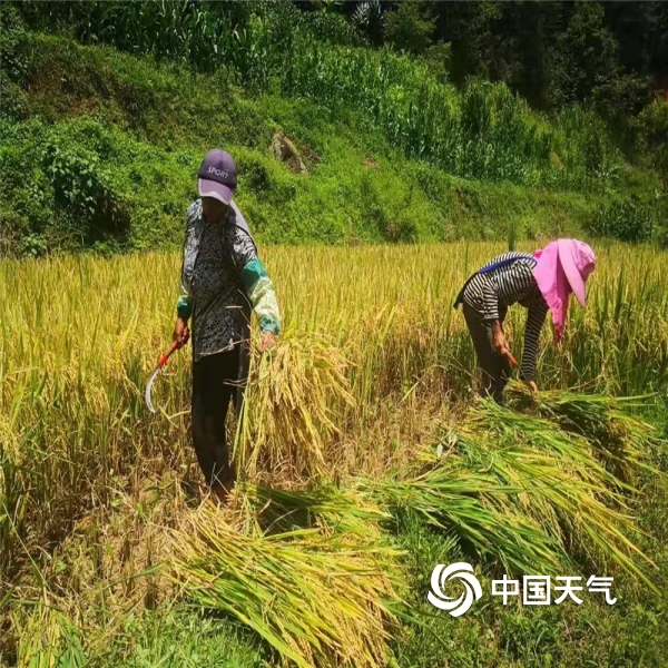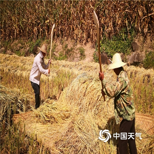 2019年10月30日 08:51图为当地农民收割水稻。(文/蒋奉玲 图/黄成兵、黄卫华)