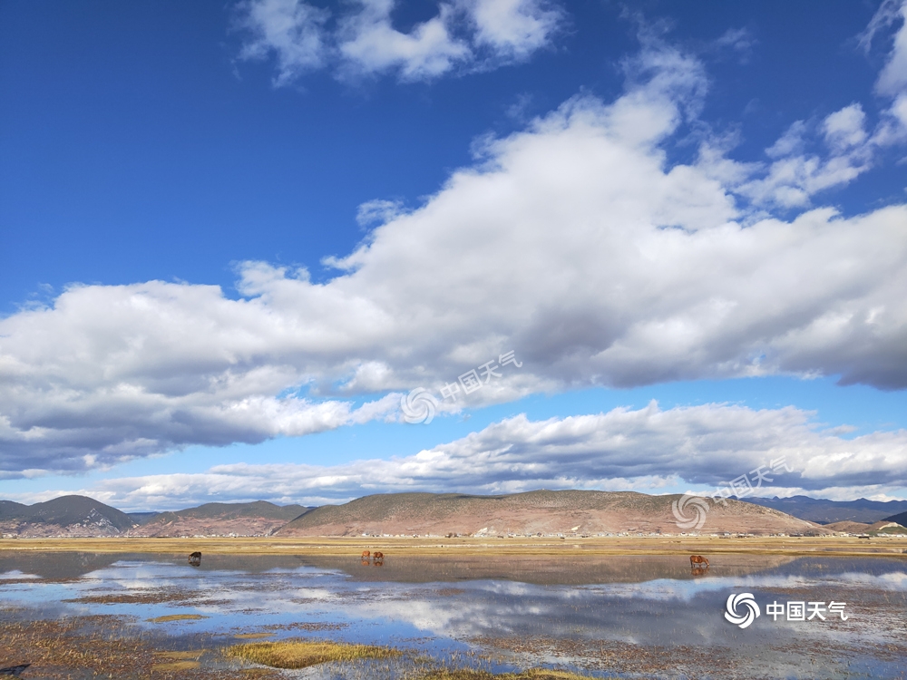 12月初至,香格里拉景色美不胜收,碧水蓝天,水波粼粼,牛羊肥壮、水鸟嬉戏,犹如一幅幅中国油画映入眼帘。
