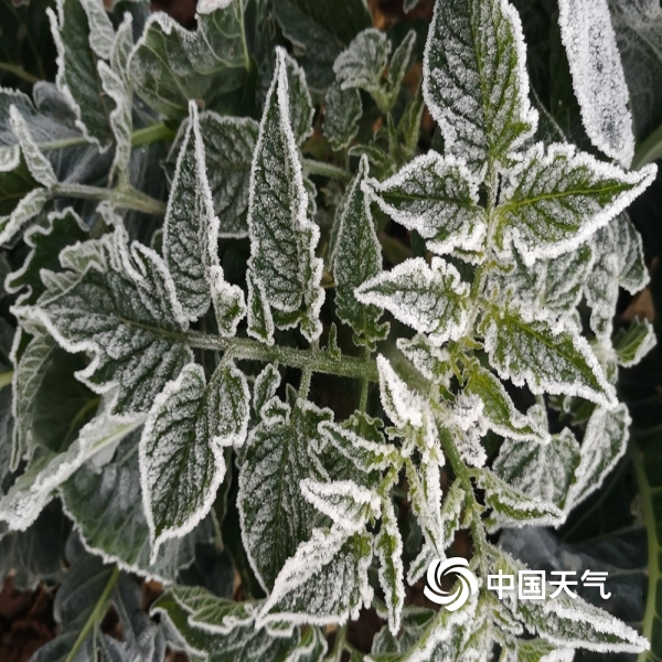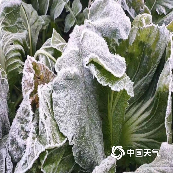 西畴县石碑村菜叶上包裹着一层白霜(文:鲜思璐 摄:谢娜)