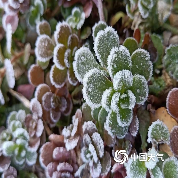 西畴县多肉植物叶片上结满霜花(文:鲜思璐 摄:何瑞)
