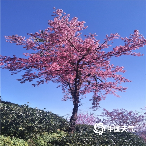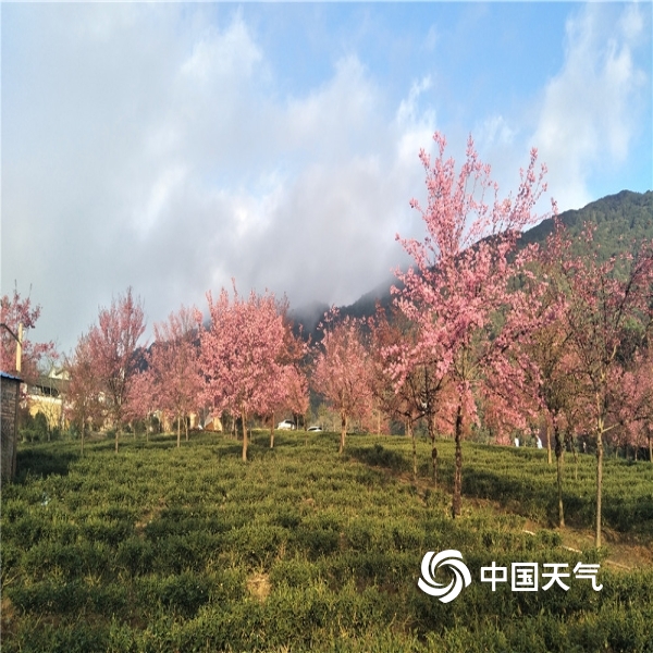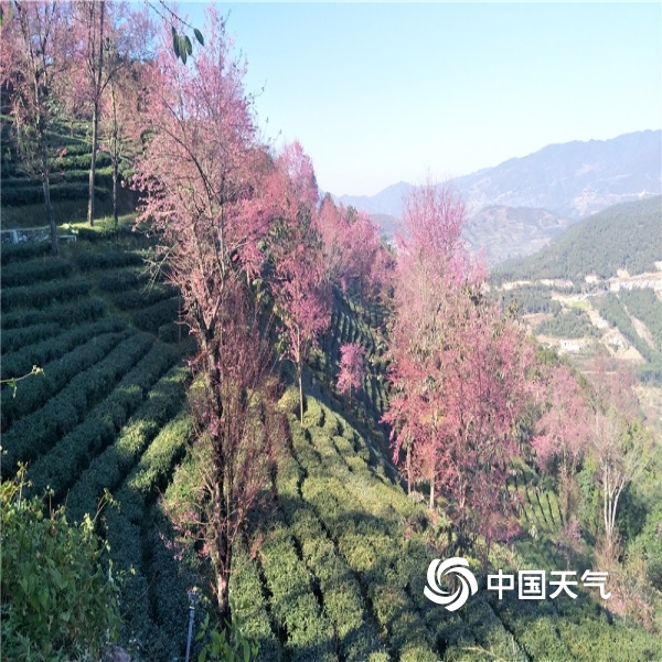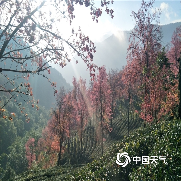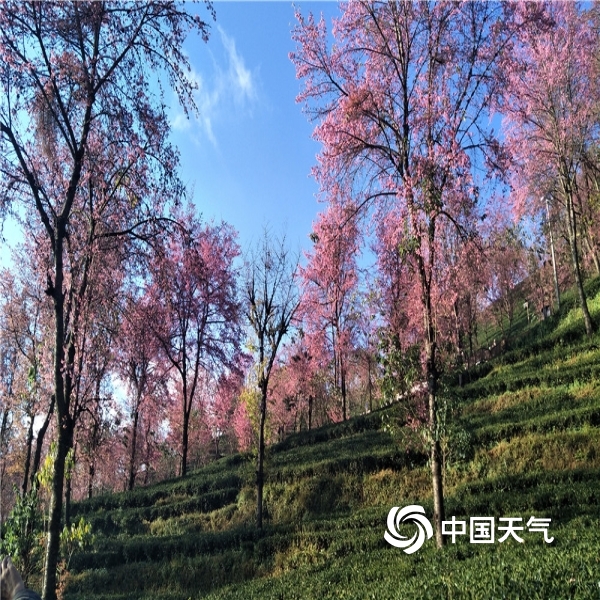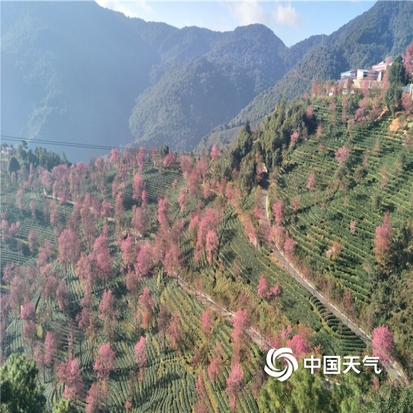 中国天气网讯 进入12月,北国一片寒风瑟瑟,但在云南大理无量山樱花谷却孕育着一场“繁花似锦”,呈现出一片粉绿相间的冬樱花海。无量山樱花谷位于南涧县无量山镇德安村委会境内,2000多亩的樱花间植在翠绿的茶园里,樱花竞相绽放,宛若仙境,美不胜收,被誉为“春天最早到达的地方”。图片拍摄于12月15日。(文图/黄春娟)