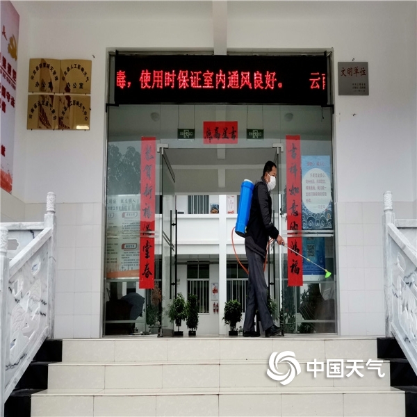 2020年02月11日 09:56云南大理云龙县气象局加强单位内部疫情防控工作,全力做好疫情防控气象保障服务,对办公区进行认真消毒。(图/文 杨素娥)