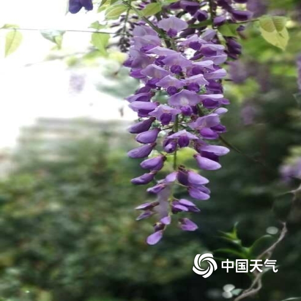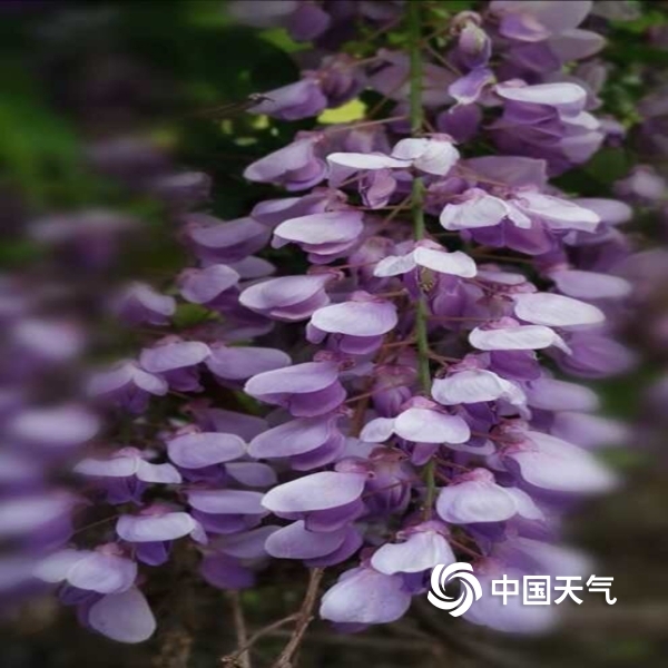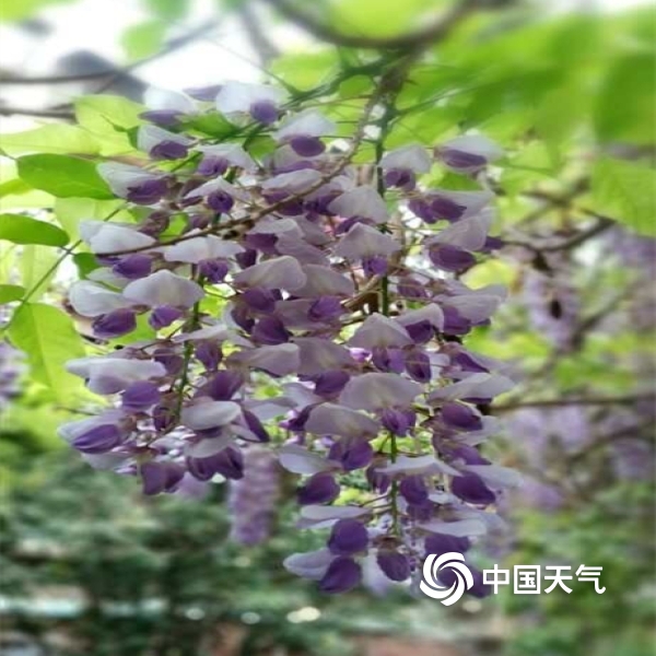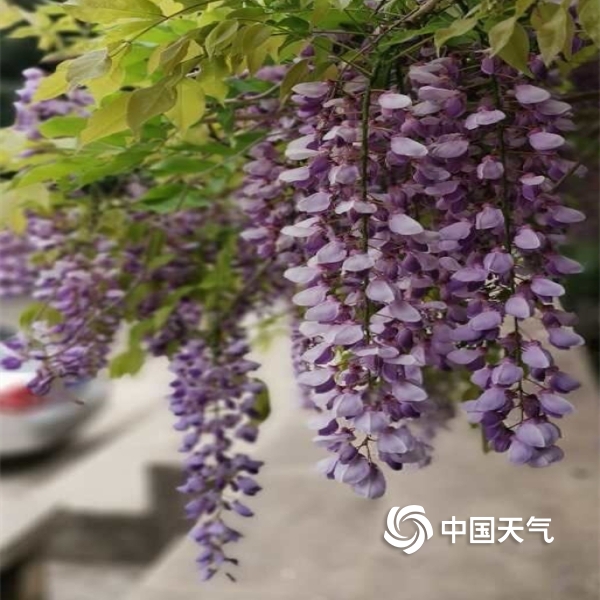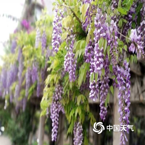 中国天气网讯 进入春季,云南昆明处处繁花似锦、风景宜人,紫藤花也正迎春绽放、吐露芬芳,紫色花穗悬挂着犹如一帘帘紫色的瀑布,美景如画,而清新、淡雅的花香扑鼻而来,令人心旷神怡。图片拍摄于3月20日。(图/文何芳 赖静)