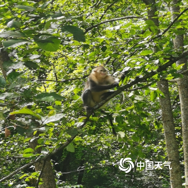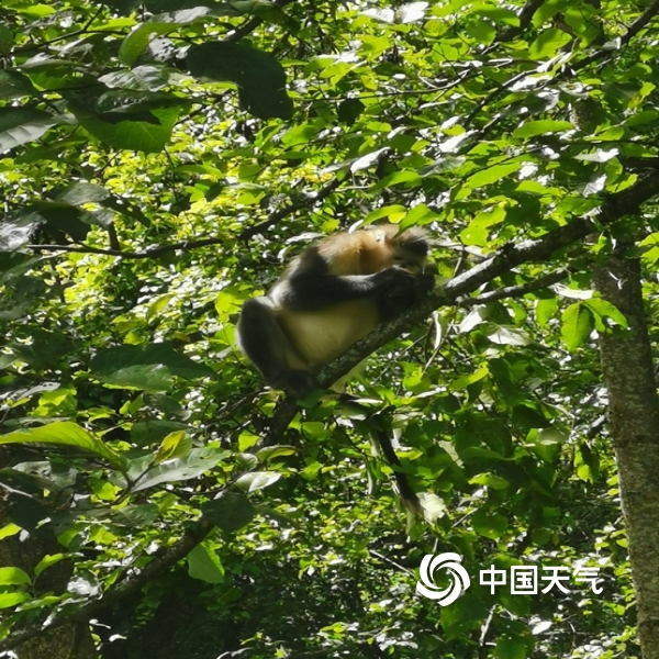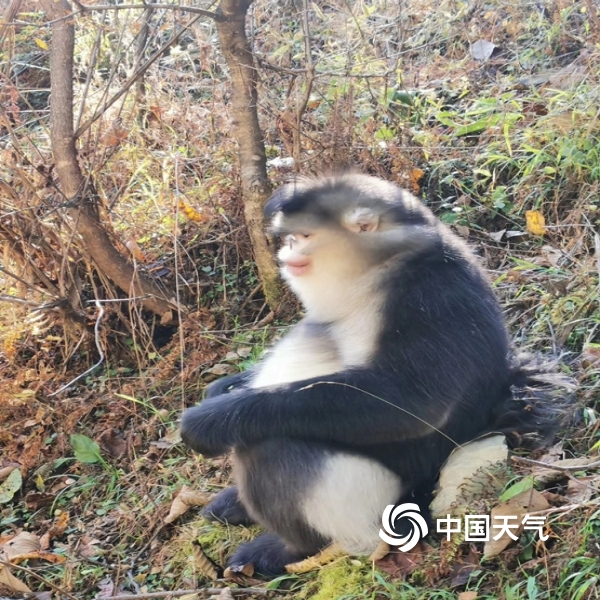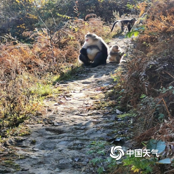 中国天气网讯 秋末冬初,坐落于维西县塔城镇的滇金丝猴国家公园里风景如画,宛若精灵的滇金丝猴,不时穿梭于林间,或在树梢眺望,或在路边讨食,很是热闹,给寒冷的天气增添了些许温暖。(摄/李明凤 文/唐超)